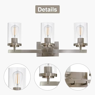 Buy Bathroom Vanity Light Fixtures Minetom 3 Light Brushed Nickel Modern Wall Sconce Lighting With Clear Glass Shade And Metal Base Wall Mounted Lamp For Mirror Cabinet Kitchen Stairs Online In Turkey from images-na.ssl-images-amazon.com Blubs not included the sea gull lighting driscoll one light wall sconce in brushed nickel provides abundant light for your bath vanity, while adding a layer of today's style to your interior design. Farm sink and steel gray cabinets in a cottage kitchen designed with a brushed nickel gooseneck faucet and black leather granite countertops. Save 20% off with code. 26 inch light can be mounted vertically or horizontally. This light would look best in the dining room or kitchen. Elementum 13 led wall sconce 3000k, brushed nickel by wac lighting (1) $207 updated with a warm brass finish, elementum brings unparalleled task lighting into your bathroom, whether mounted vertically on either side of the mirror or above a vanity mirror for a flattering diffuse illumination. Contemporary lines of kuzco lighting's croydon led bathroom wall sconce. Our bath sconce designs cover all the designer styles from sleek clean modern looks in metals such as polished nickel and brushed nickel to traditional historical recreations in rustic iron and antique brass.