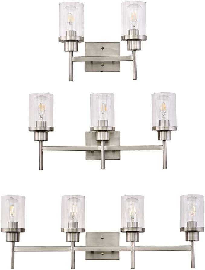 Possini euro raden 10 high brushed nickel wall sconce. Vanity wall light fixtures, modern 3 lights wall sconce with clear glass shade, brushed nickel farmhouse wall lamp for bathroom mirror kitchen porch living room workshop (e26 base) $49.99 $ 49. 26 inch light can be mounted vertically or horizontally. Mitzi by hudson valley lighting. If you are looking for silver or gray colors, then brushed nickel is the way to go.